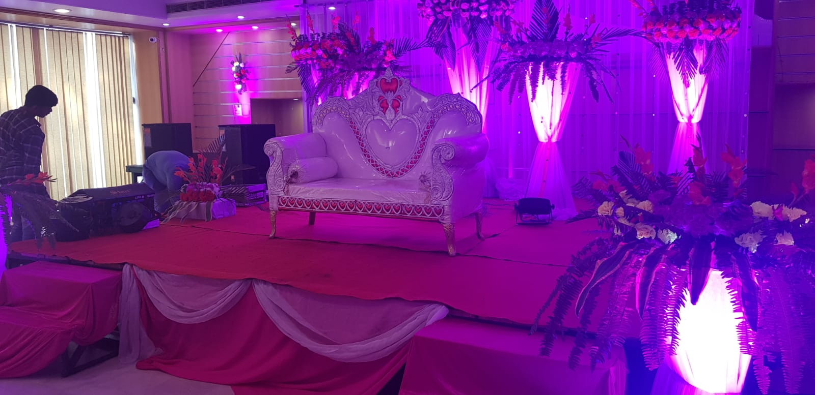 Vandhanam multipurpose hall is started in January 2017 to meet the ever-increasing requirement of all season air-conditioned halls for banquet, marriage, reception, baraat, birthday, engagement, conference etc., in cantonment area.This is the best air-conditioned hall in Buddha Vihar colony having capacity to accommodate about 100 to 1000 persons with two floors that is ground and first a carpet area of 5400 sq .ft.The speciality of the hall is it is pillerless inside hence best for conferences and good for photography of any function. Besides the hall, it has sufficient kitchen area, toilets, serving areas for eatables with a 40 KVA generator support.Our humble endeavour is to contribute our best to minimize the burden of individuals or corporate by providing our services including food, sound systems, flower decorations etc. at competitive charges keeping it in mind less impact on environment, pollution etc.